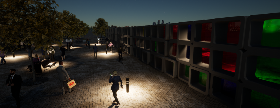 I started working with a parametric design. I coded integration to drive patterns and energy savings initiatives or as in this case to shape facade openings with a level of variability built-in. I was inspired by sun-shielding facades as well as kinetic facades and I wanted to work on a simplified modulating sun covered facade. This simplified component modulates in-depth and has a varied selection for the colour of the glass partitions, which are all driven by #dynamo and #parametricdesign via #revitbim. In this case, the components are used as art pieces to add more character to green spaces and walkways.